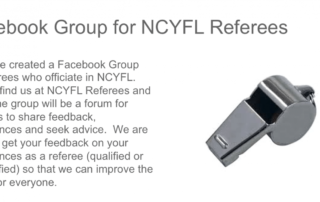 We have created a Facebook Group for referees who officiate in NCYFL. Please find us at NCYFL Referees and join. This group will be a forum to share feedback, experiences and seek advice. We are keen to get your feedback on your experiences as a referee (qualified or unqualified) so that we can improve the game for everyone.